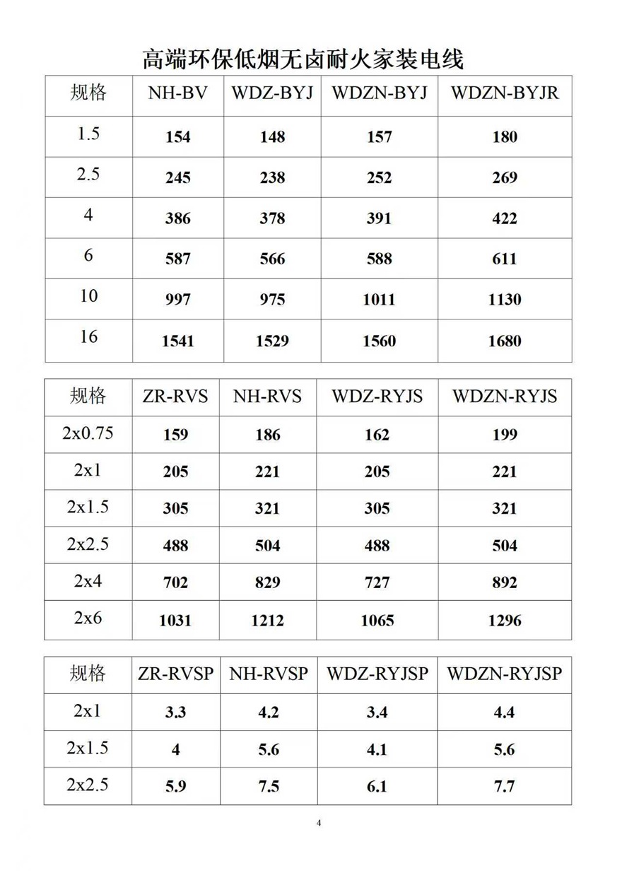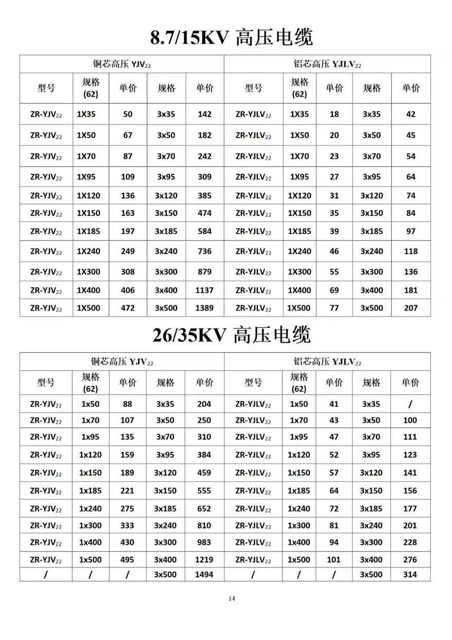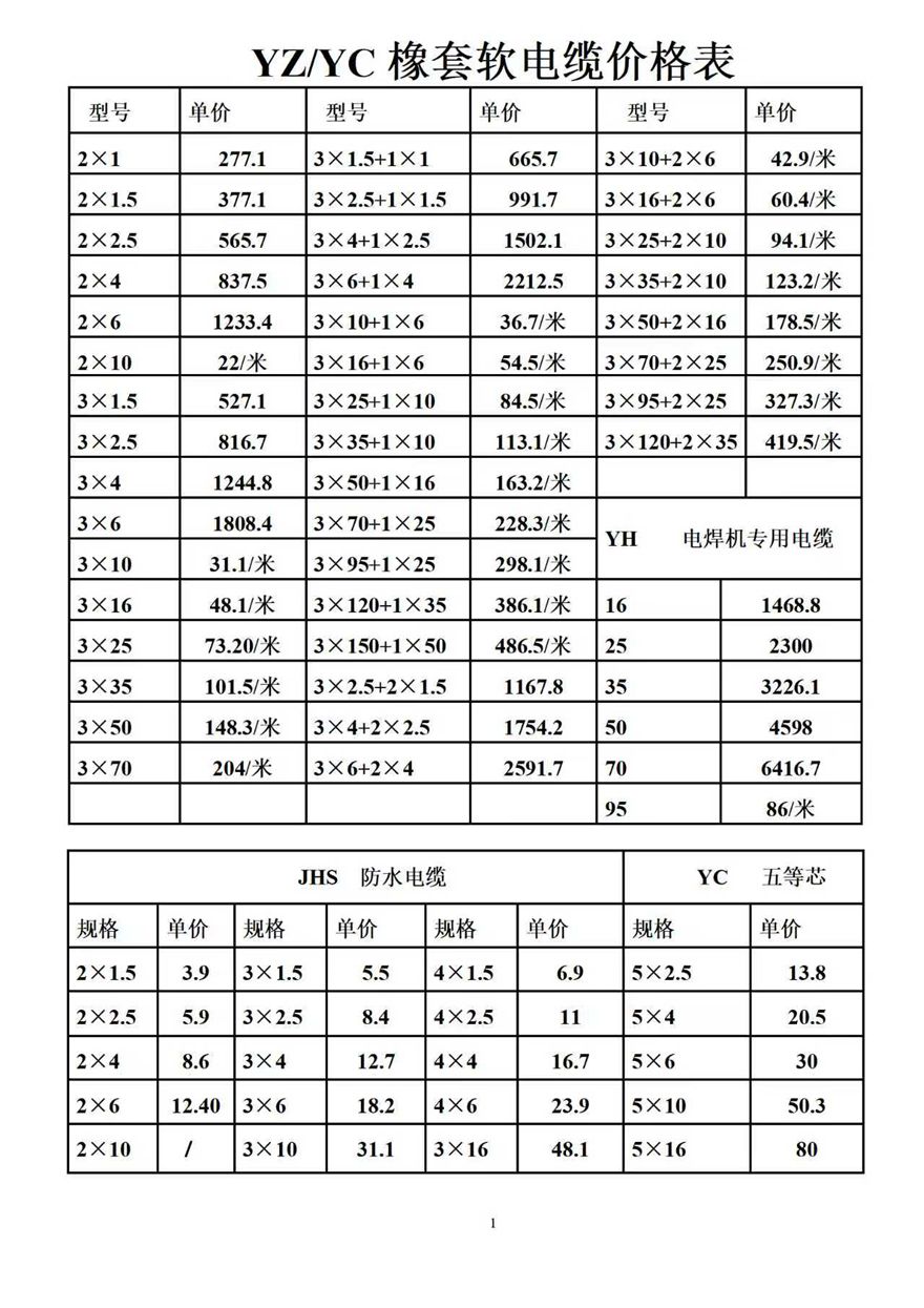 金峰電纜價格表